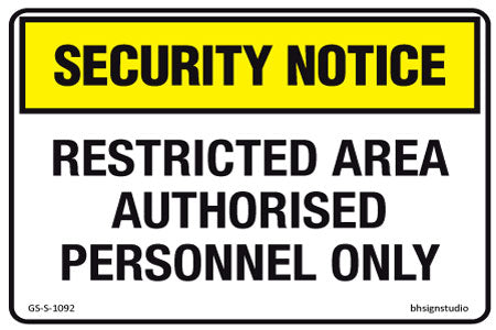Restricted Area - Authorised Personnel Only - Security Notice Sign - Corflute/Poster Options