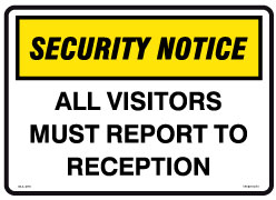 All Visitors Must Report To Reception - Security Notice Sign - Corflute/Poster Options